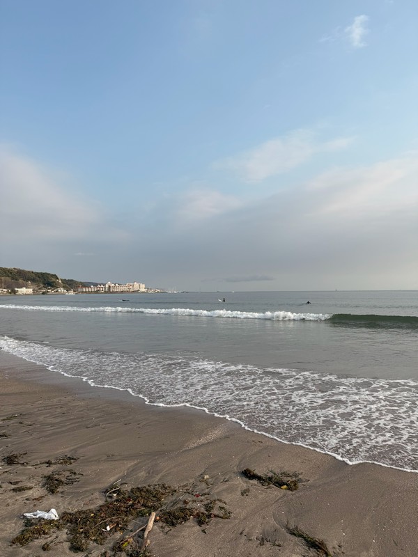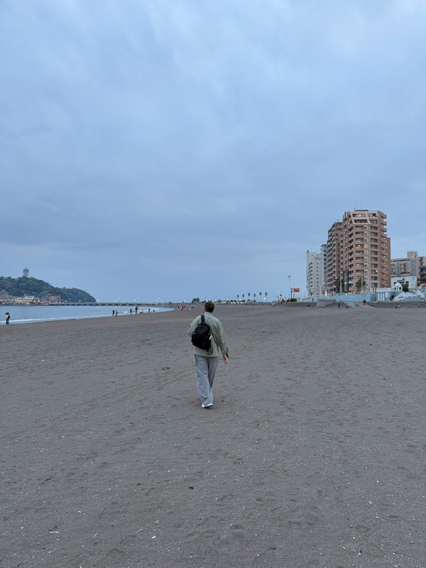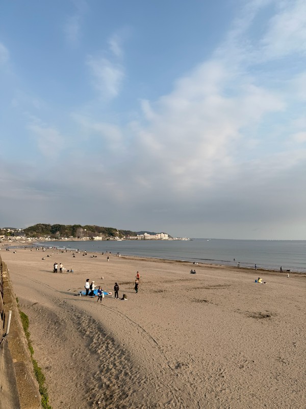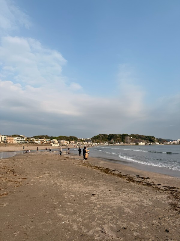 Пляж на гугл-картах называется Kamakura Yuigahama Beach и выглядит потрясающе даже несмотря на то, что волны на берег приносят всякое, в том числе и мусор. При этом людей было не так чтобы и много, особенно в сравнении с торговым кварталом или храмом. Поэтому наблюдать за океаном было невероятно приятно.