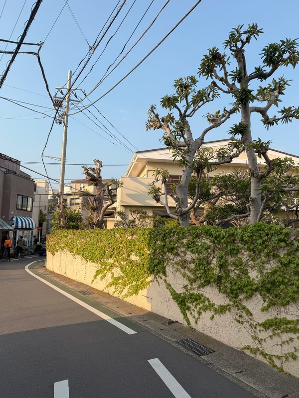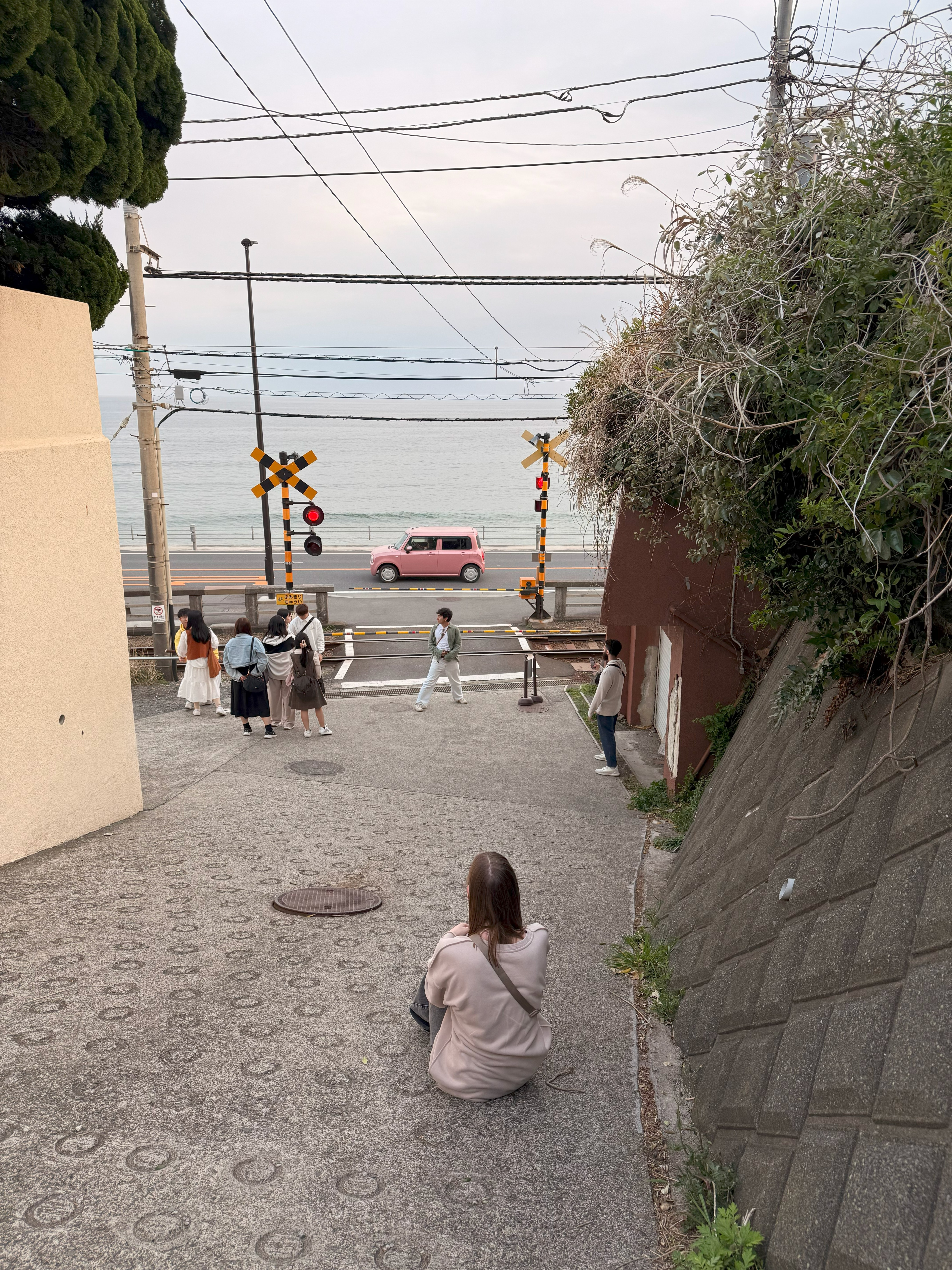 Но так как именно этот пляж не был нашей конечной точкой путешествия в Камакуру, то мы недолго понаслаждались видом и пошли дальше. Путь наш лежал через частный сектор (где всё-равно находилось место для отелей с закосом на небольшие жилые дома) к трамвайной остановке. И это, конечно, офигенный опыт. Дома ухоженные, на ограждениях множество растительности, дороги ровные и чистые. Пока шли очень хотелось купить один из подобных домиков (мечты-мечты).