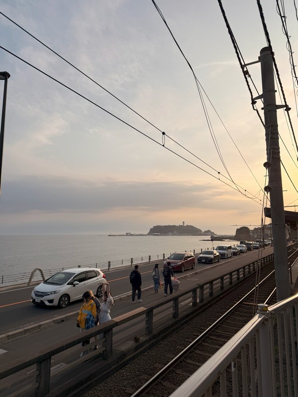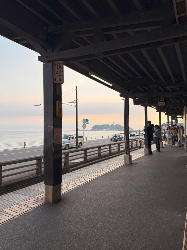 От станции мы направились в сторону Katase Higashihama Beach, почти весь путь до куда проходил по краю автомобильной дороги, которая шла по берегу океана. Зрелище, конечно непередаваемое. А ещё именно рядом со станцией Шичиригахама есть особенно крутые и популярные виды на железную дорогу и океан. Очень много людей хотят запечатлеть проезд трамвая на крутейшем фоне. Вот только не всем местным это по нраву, а в одном месте дедулька даже гонял приезжих, которые пытались сфотографироваться. Он был прям подготовленный и сделал плакат, на котором было написано что-то типа “No photo”. И с одной стороны его можно понять, ведь все эти гайдзины сильно мешают, но с другой стороны это ведь туристическое место и можно обойтись просьбами не шуметь. Хотя могу предположить, что просьбы не работают.