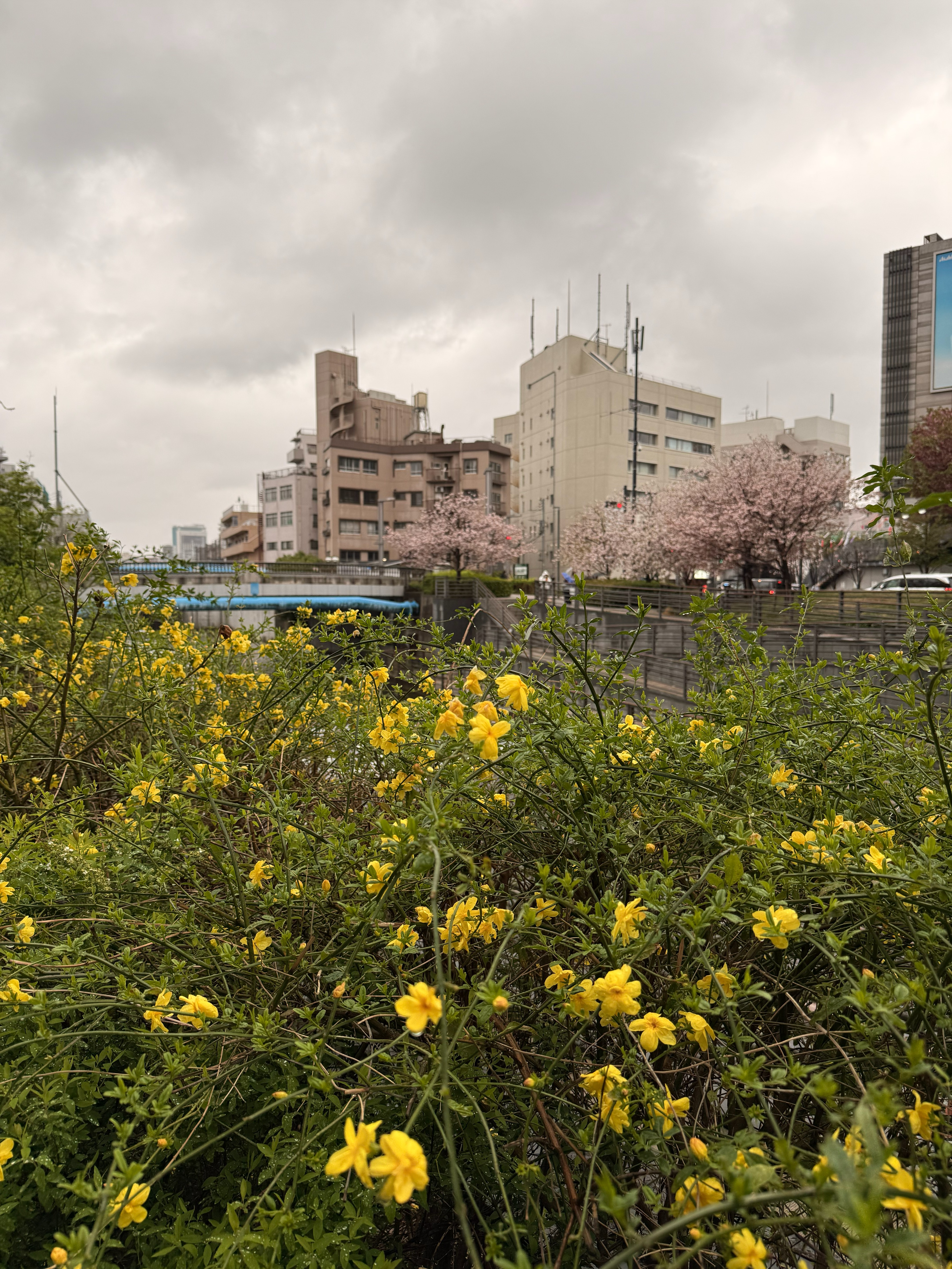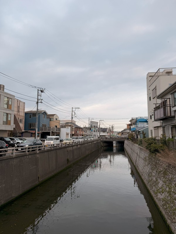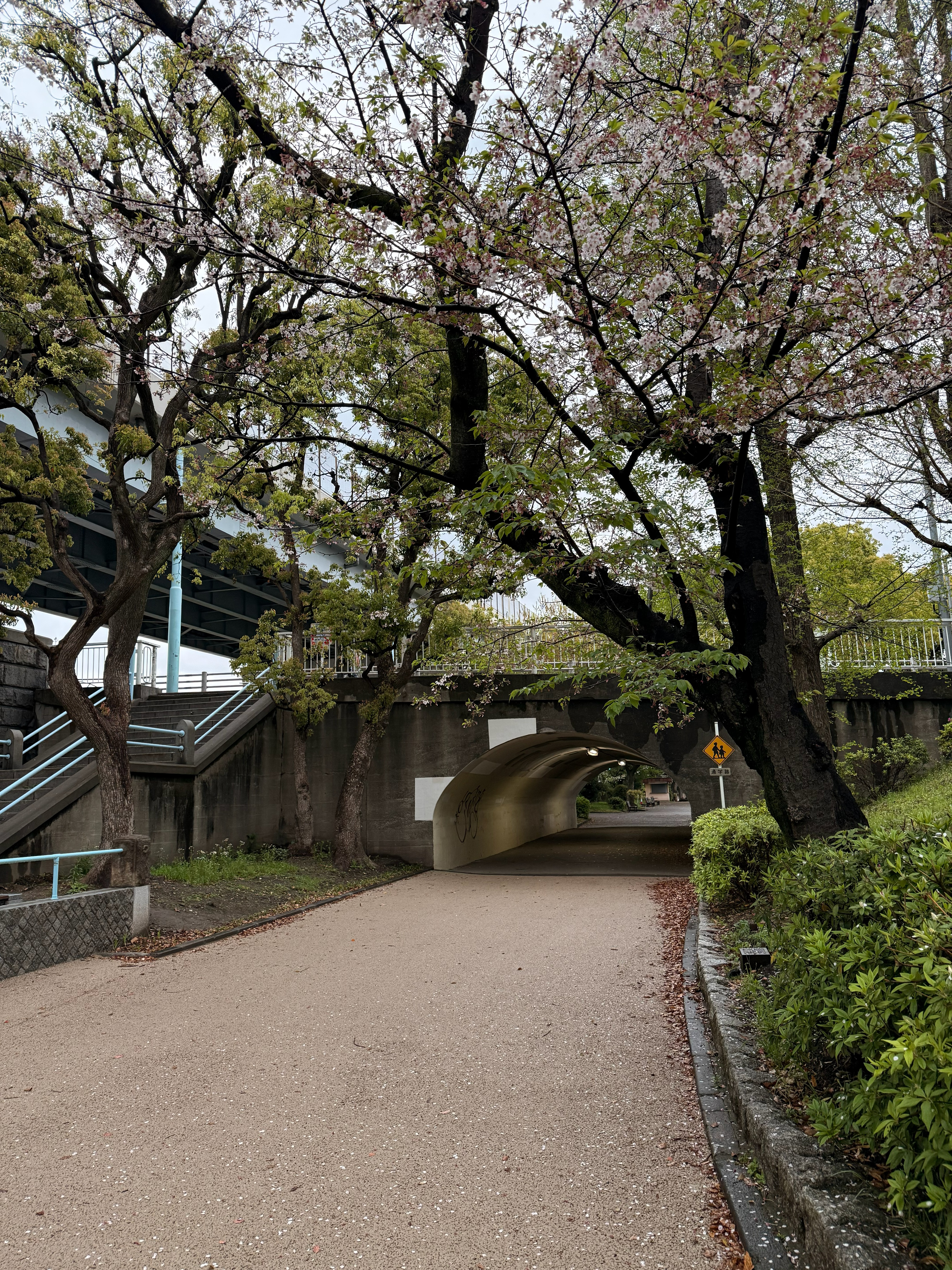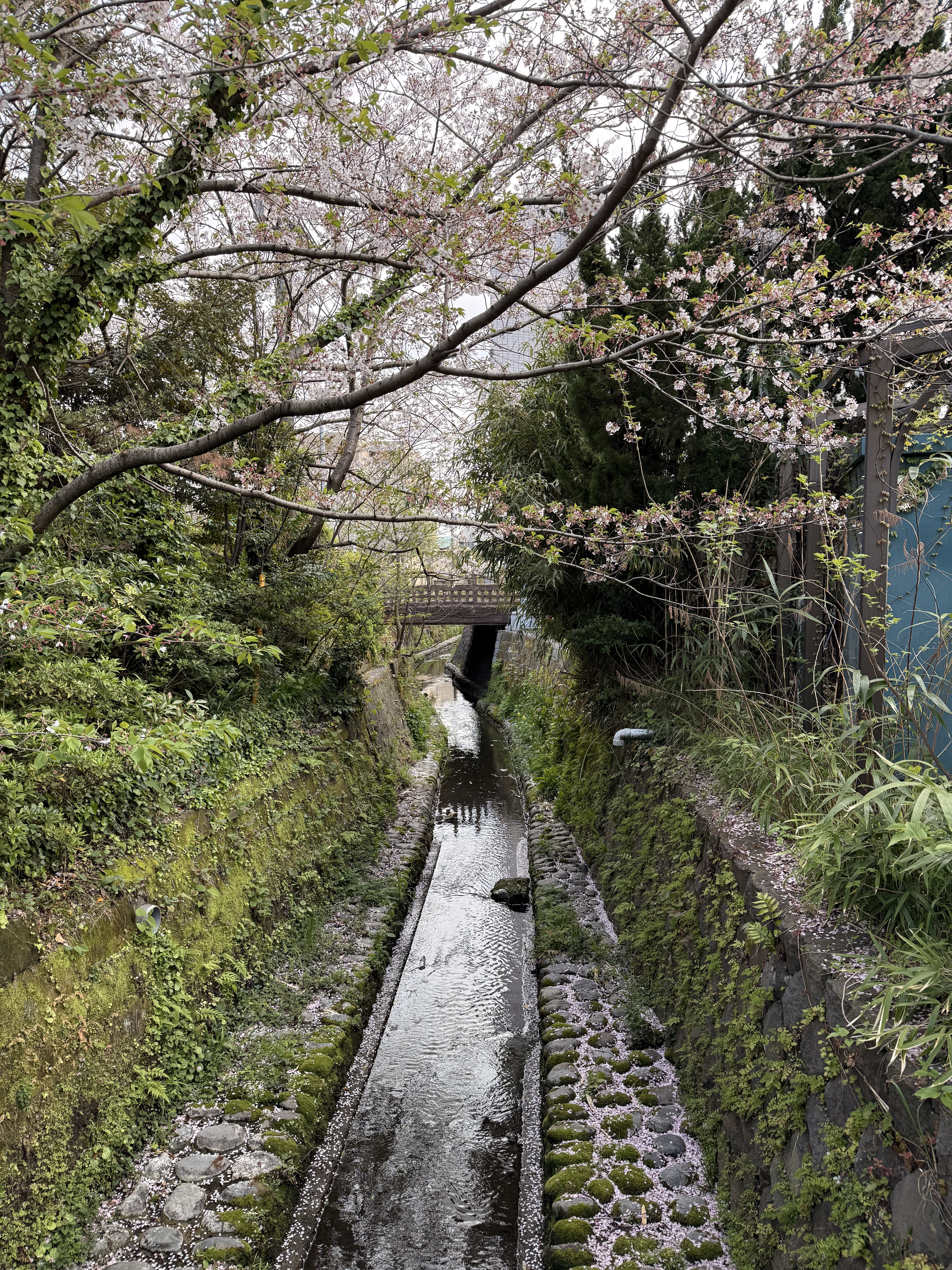 Через какое-то время улица пересеклась с неким каналом, а рядом были высажены сакуры. Очень красивое зрелище.