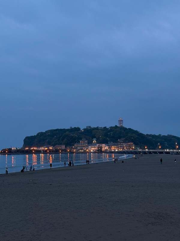 Ну и вот апогей поездки в Камакуру - просторный и приятно успокаивающий пляж рядом с Enoshima. Ну, то есть по-факту мы за один заход перебрались из одного города в другой. И даже не заметили этого. Хотя вообще Эношима - это тот самый красивый остров, который видно с любого ближайшего пляжа. Было сильное желание дойти и до него, но уже постепенно начало темнеть, поэтому мы просто подольше потусовались на пляже и постарались словить дзен. Дзен словить не вышло, но зато эмоций испытали вагон. И вот с этим вагоном мы пошли на станцию, чтобы вернуться в Токио (до которого, с учётом изменения места посадки, нужно было ехать часа полтора). Благо обратный путь прошёл без происшествий.