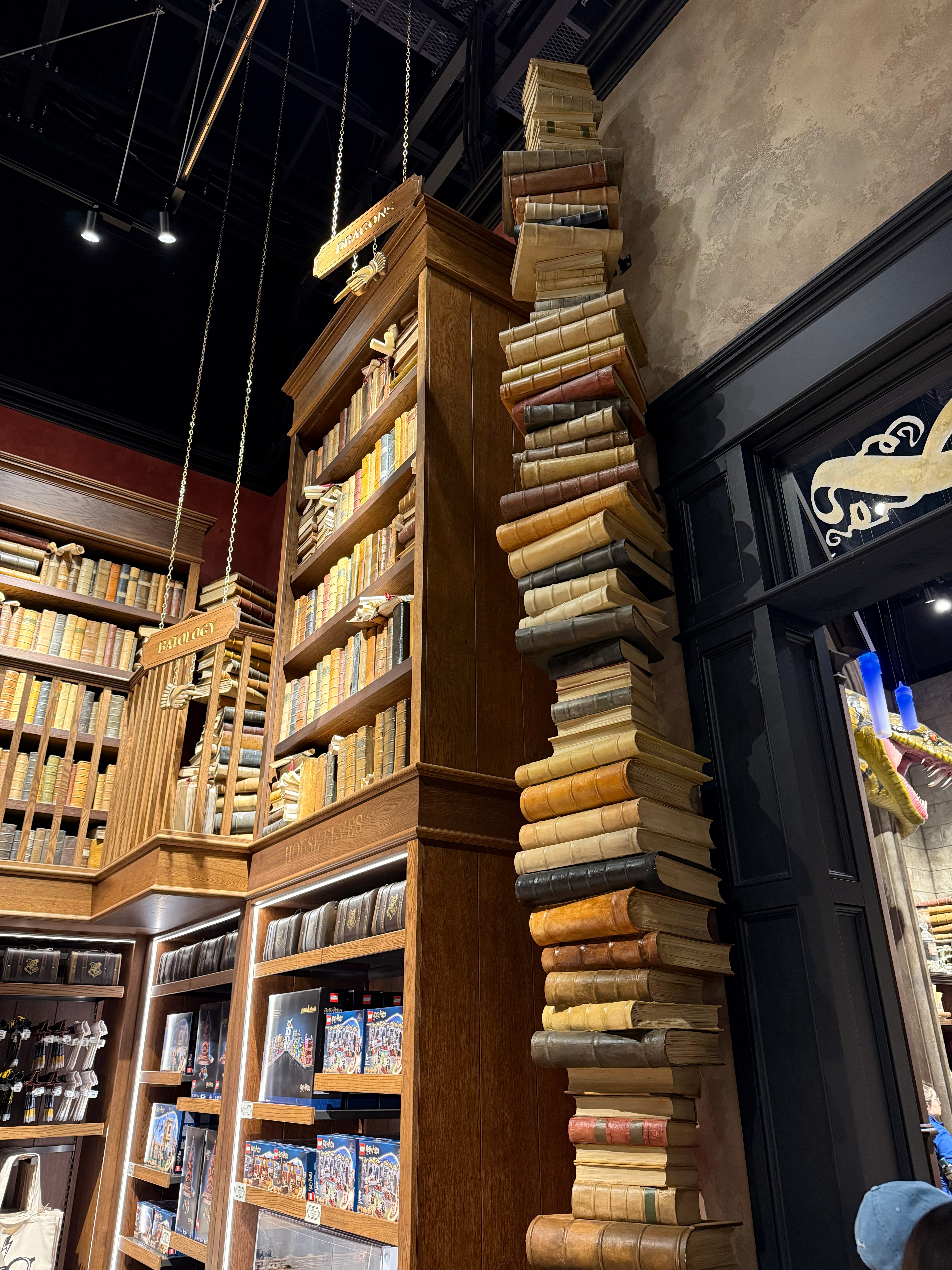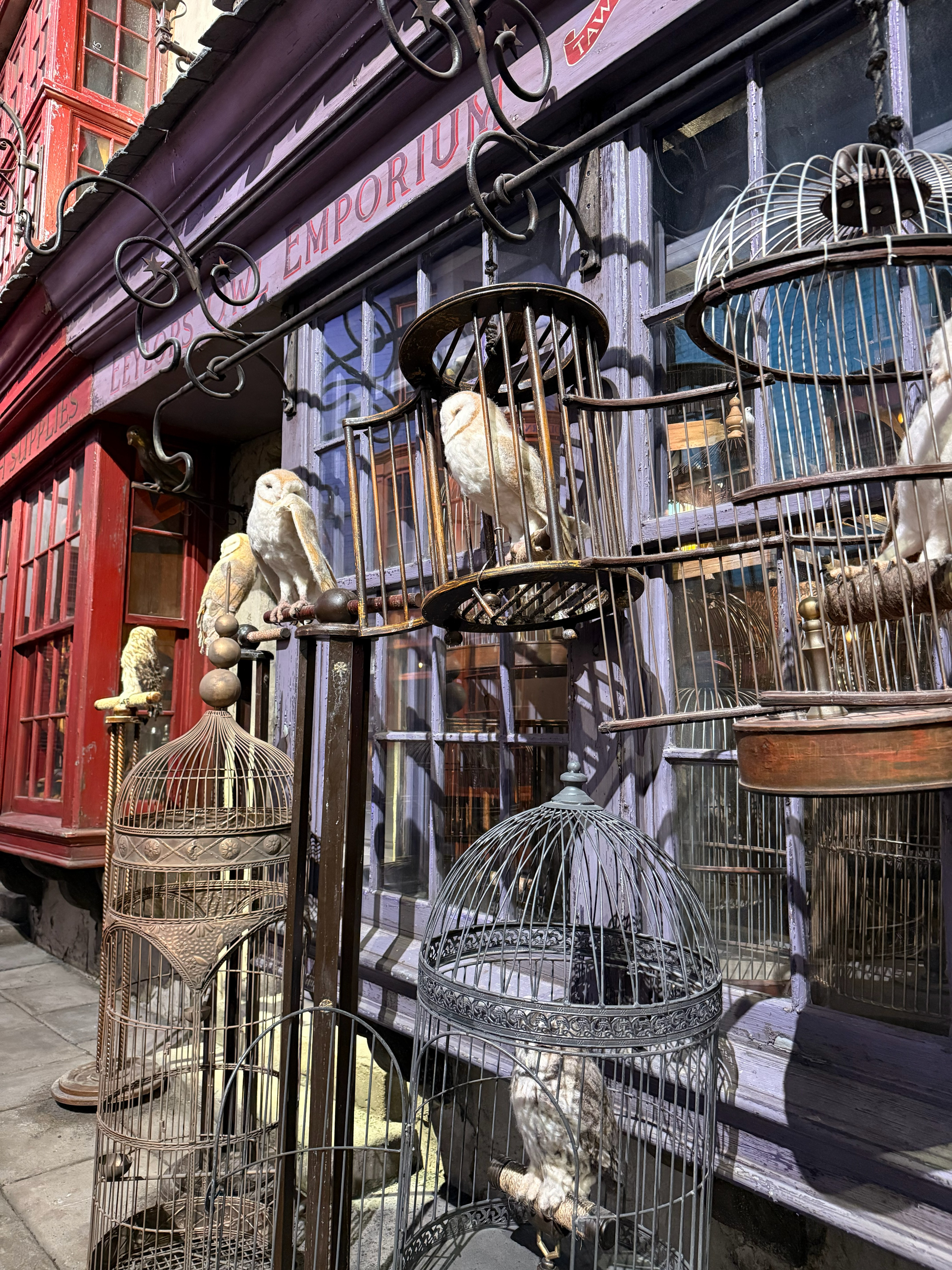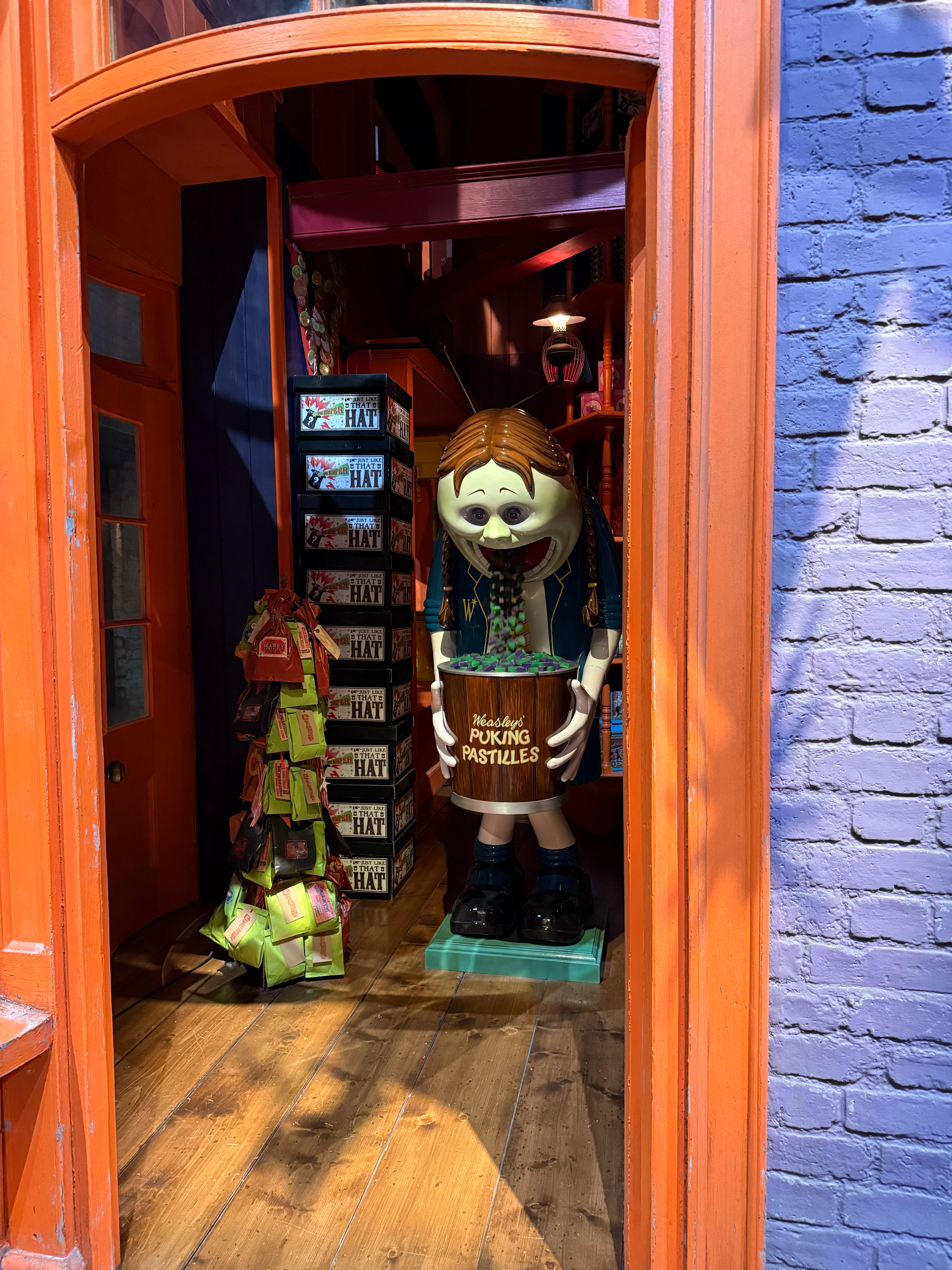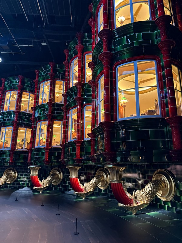 И уже увидев много достойных мест, впечатлявшись настолько, что перестаёшь ронять челюсть в каждом новом павильоне, мы увидели пик всей выставки - Косой переулок. Он невероятно потрясает соотношением масштаба к деталям. В каждое заведение можно заглянуть через окно и увидеть всё то, что мы видели в фильмах. Непередаваемое ощущение. А ещё и с динамической сменой освещения день/ночь это вообще выглядит волшебно.