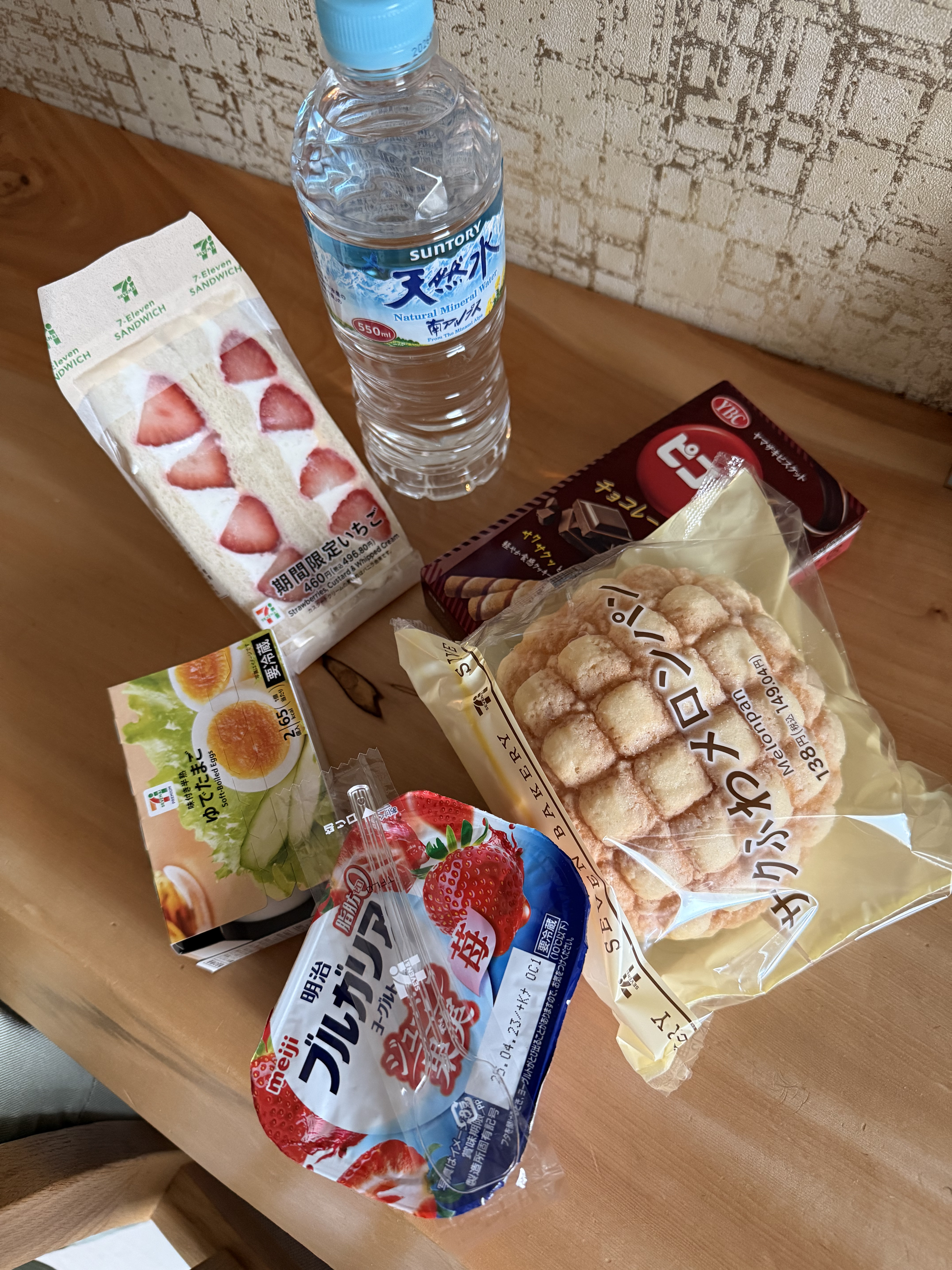 Ну и какая прогулка без покупок в местном небольшом конбини? В таких путешествиях оказывается очень сложно держать график обеда и ужина, поэтому появляются вот такие перекусы.