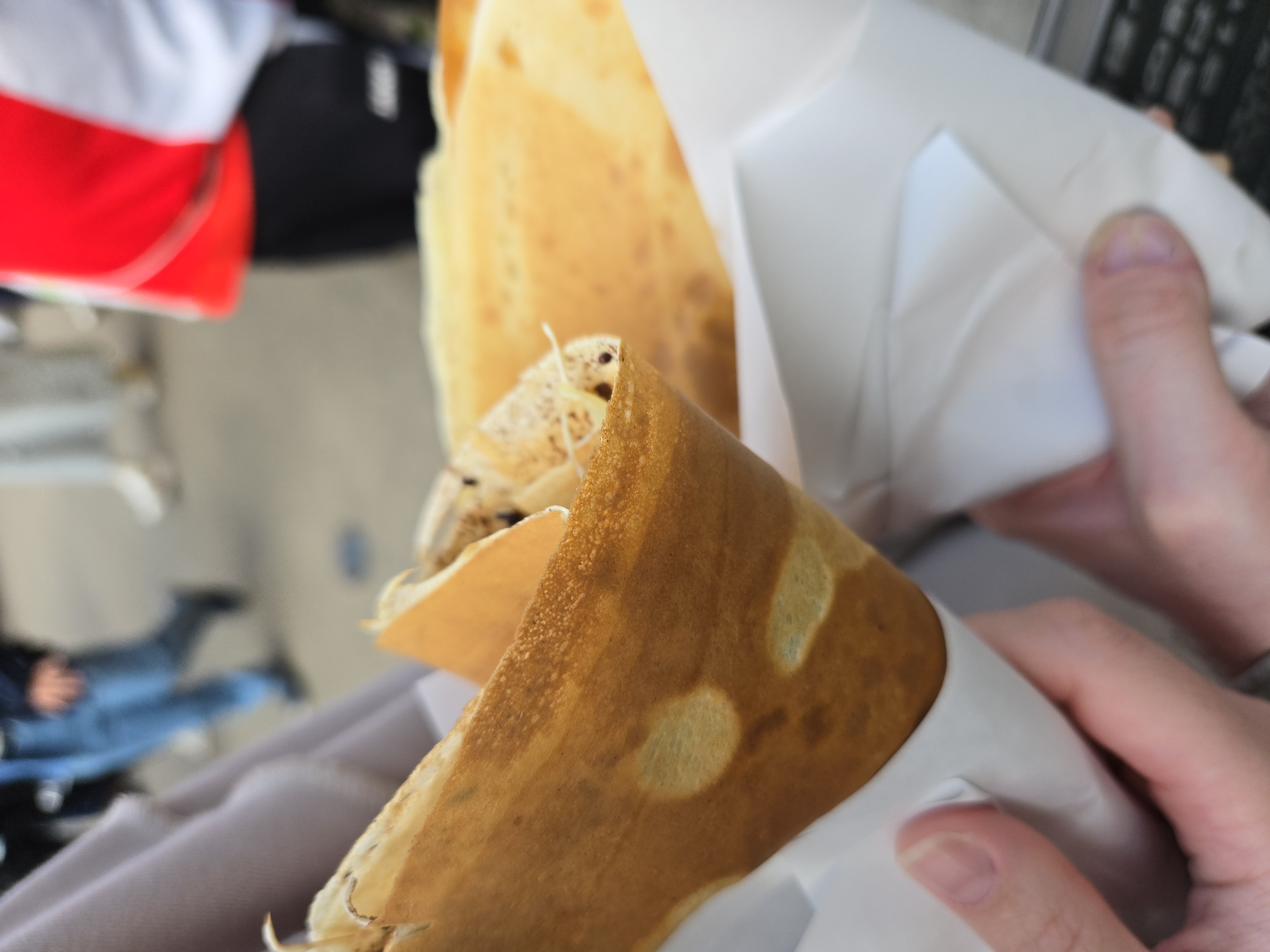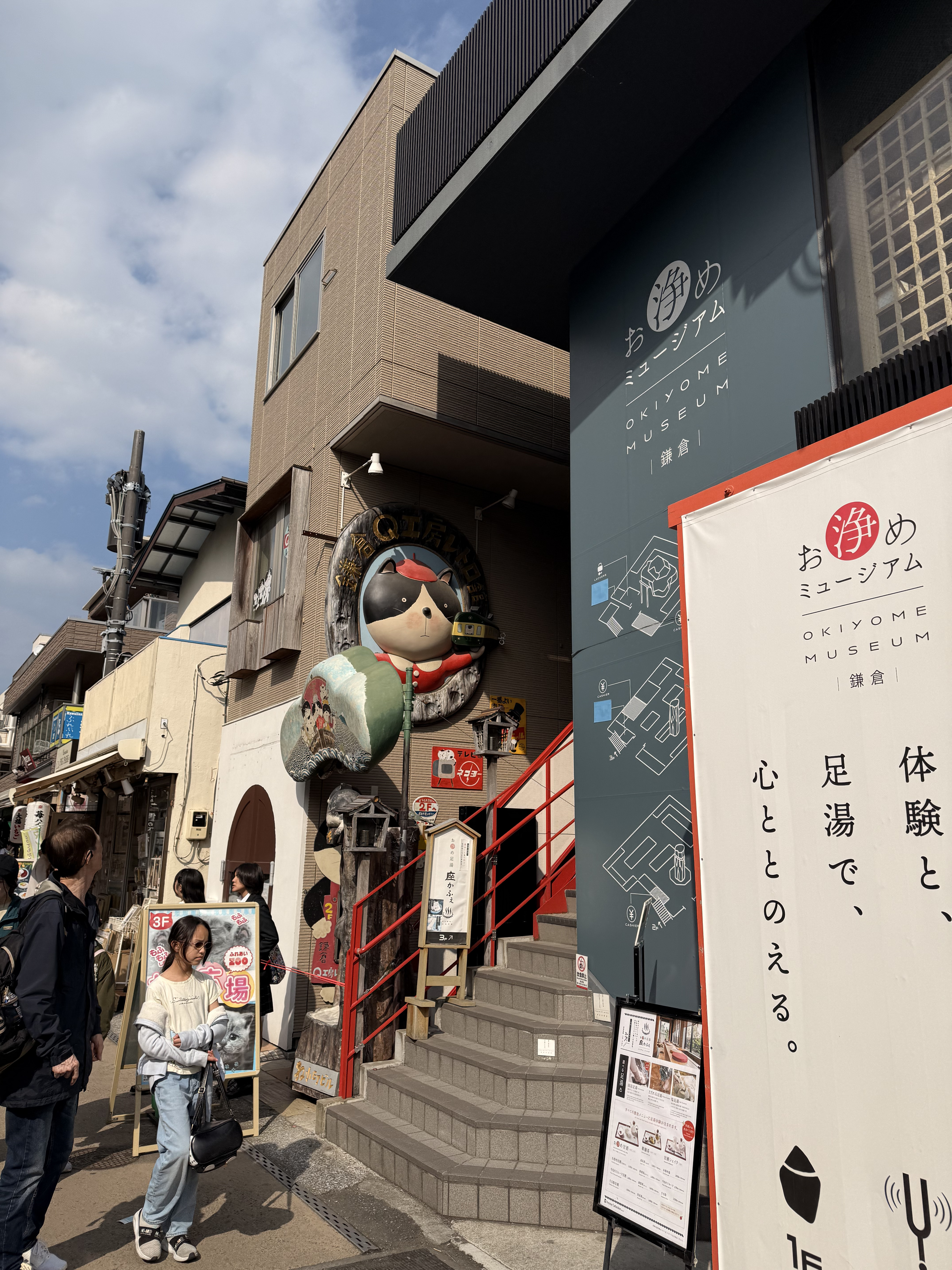Как я уже сказал, ехать нужно было где-то 1.5 часа. Вагон был стандартный для Японии с рассадкой как в метро. Народу было немало, поэтому полностью расслабится и поснимать из окна не получилось. По приезду нас встретила небольшая станция, но всё так же с большим количеством людей. По плану у нас была прогулка по основной торговой улице Komachi вплоть до храма Tsurugaoka Hachimangu. Сама улица миленькая и компактная, и идти по ней было бы приятно, если бы не толпы туристов. Распиаренное это место, конечно. Где-то на половине пути уже проснулся аппетит и начался мучительный выбор, что поесть. Мучительный он, потому что заходить прям в рестораны не хотелось, а стритфуда было мало, и, соответственно, там были большие очереди. И вот мы увидели их - блинчики. Ну, то есть это прям реальная блинная, где при тебе готовят блины с разной начинкой. Забавно выглядел процесс заказа: на входе в помещение стоит автомат, у которого много кнопок, отражающих группу блинчиков. Дав автомату денег и нажав на кнопку, получаешь билетик. Вот только на этом процесс не закончен. Когда подходишь к “выдаче”, нужно сказать какую конкретно начинку тебе нужно в рамках выбранной группы. А на билетике нет ни слова по-английски, поэтому получишь ты то, что хочешь, зависит от твоей памяти. Квест интересный, блинчики вкусные.