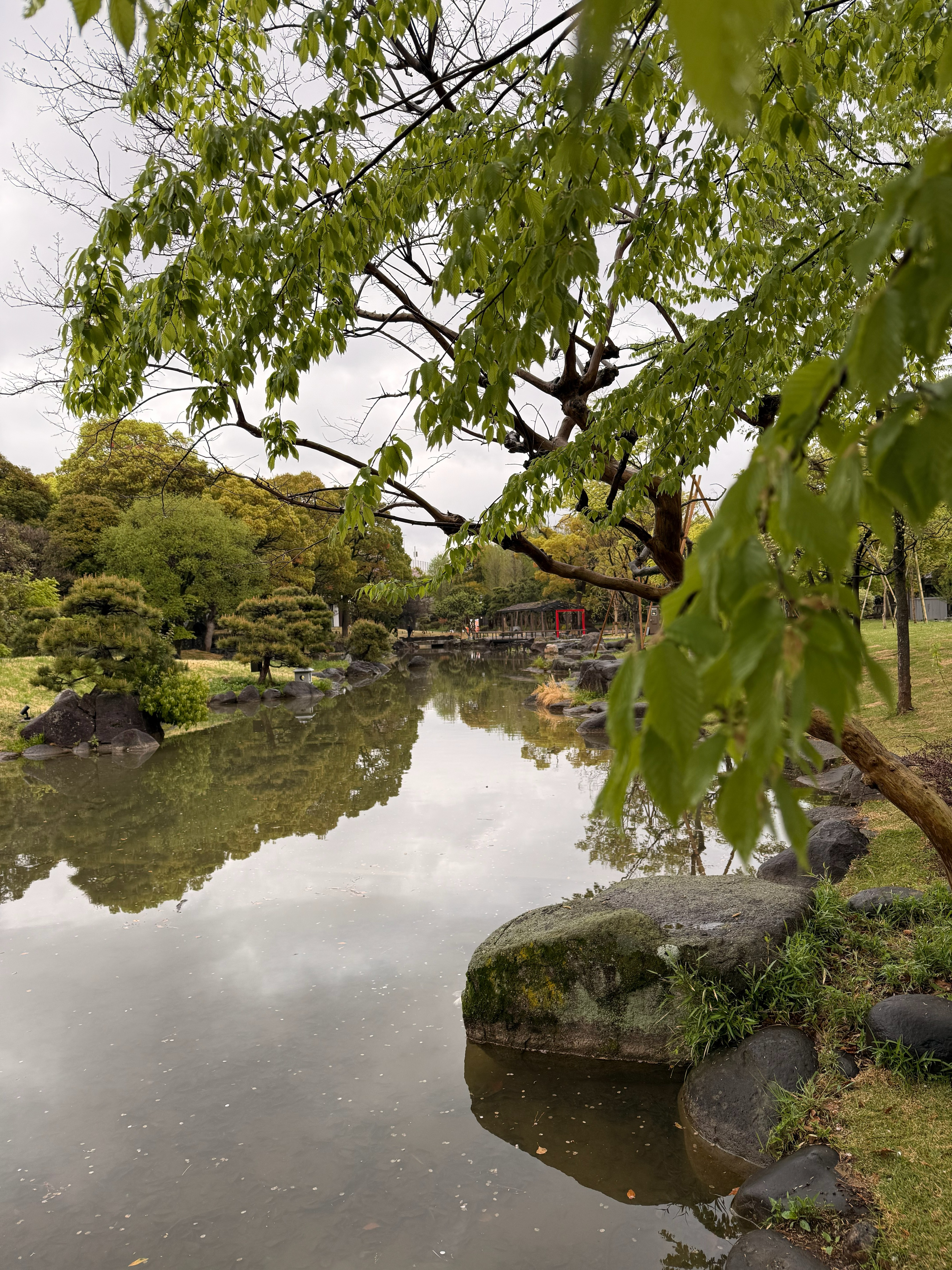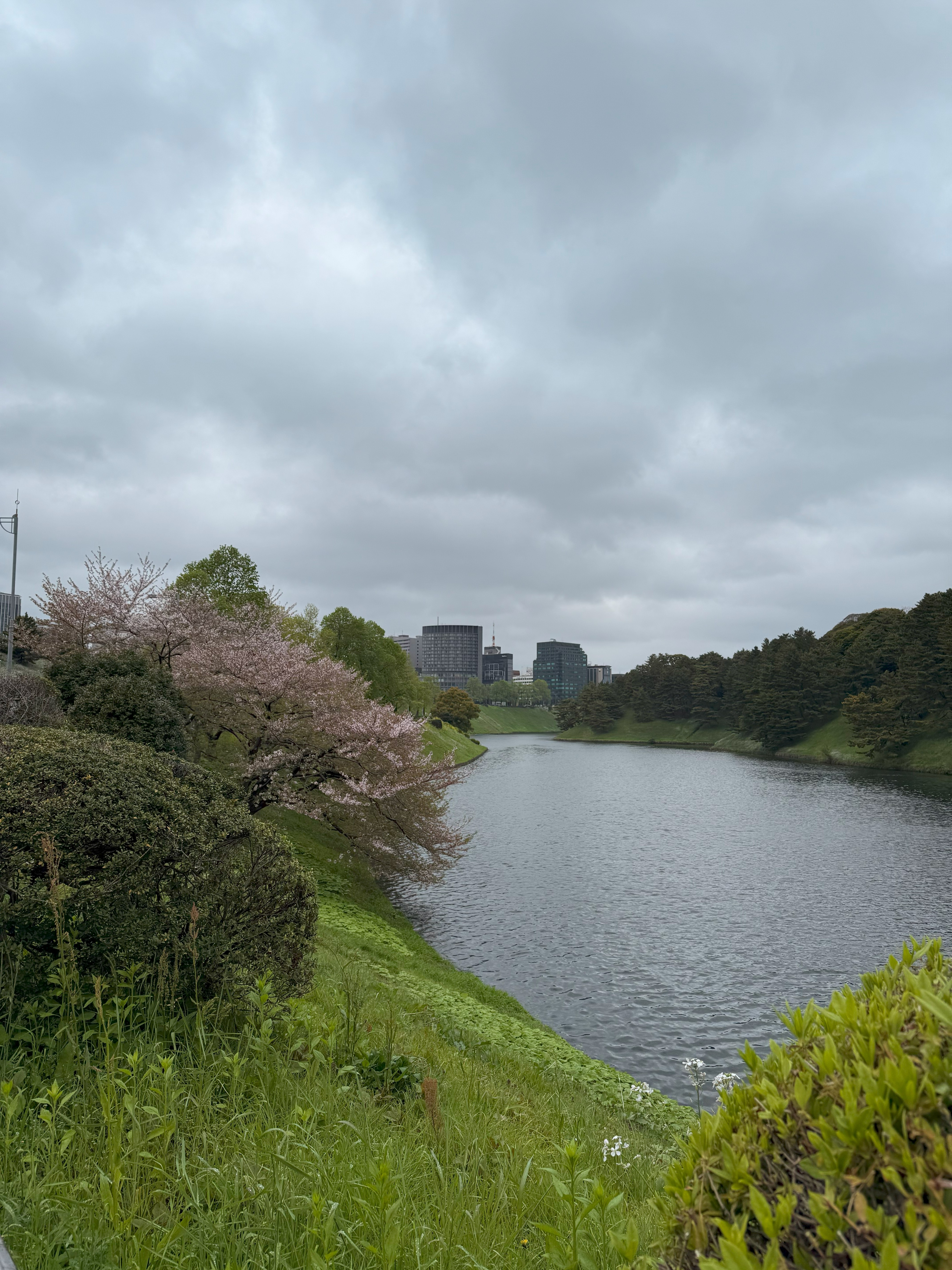 Продравшись через район с небоскрёбами мы зашли в The Diet Front Park - довольно большой парк, в центре которого возвышается стелла с часами. Вообще, парк находится рядом с политическими зданиями и имеет вайбы “парка победы” в любом из городов РФ. Вот только есть одно ощутимое отличие - просто огромное количество растительности. А если судить по информации с официального сайта, то видов растений не просто много, но они посажены по всем японским канонам (когда в любой из сезонов что-то да цветёт). Выйдя из парка мы попали на набережную рва территории императорского дворца. Ров выглядел внушительно и красиво. А сама набережная привлекала бегунов, которым была предоставлена очень длинная дорога для непрерывного бега.